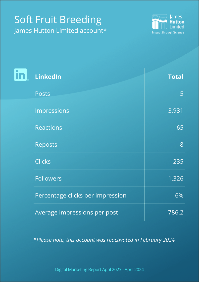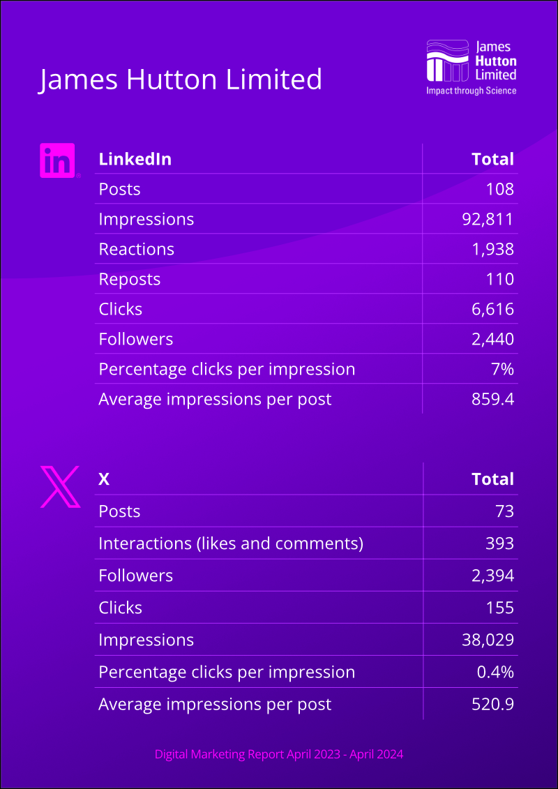 The process of metrics and benchmarking is crucial to any marketing strategy. If you don't measure your results you'll never gauge the effectiveness of your marketing tactics. An annual report was required measuring the engagement of James Hutton Limited's digital channels, specificially social media and websites.