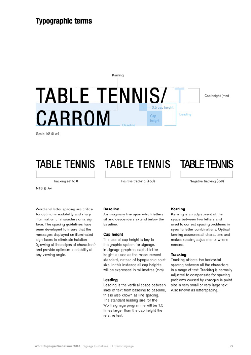 - Typeface selection and typesetting with importance of sizing to meet international compliance regulations regarding viewing distances